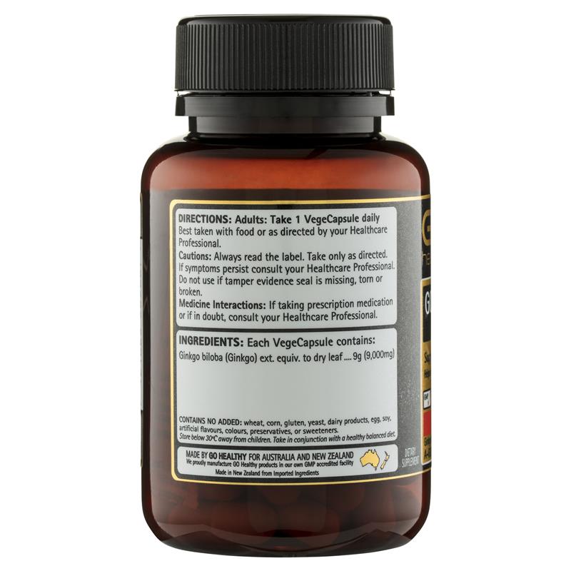 GO Healthy GO Ginkgo 9.000 viên uống 1-A-Day Vegecapsules hỗ trợ trí nhớ và tinh thần minh mẫn, đồng thời giúp duy trì tuần hoàn máu não, chân, tay.